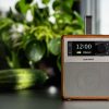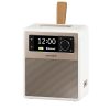 Das EASY Radio bietet mobilen Musikgenuss dank einer ausklappbaren Leder-Trageschlaufe und optionalem Batterie- oder Akkubetrieb. Es lässt sich überall hin mitnehmen und lädt Ihr Smartphone über den USB-Port. Eine integrierte LED-Beleuchtung sorgt für angenehmes Licht, ideal als Nachtlicht. Mit Funktionen wie Sleep Timer, Weckfunktion und dimmbarem Display bietet es zudem Komfort. Das kompakte Gerät überzeugt mit einem Retro-Design, einem Holzgehäuse in glänzendem Lackfinish oder Walnussmaserung und bietet FM, DAB+ sowie Bluetooth® für kabellosen Musikgenuss. Bis zu 5 Lieblingssender können als Favoriten gespeichert werden.